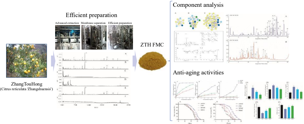 黄酮类成分作为陈皮的主要活性物质,以C6-C3-C6骨架为核心结构,具备抗氧化、抗衰老、抗肿瘤、抗菌、抗炎以及调节血管通透性等多种药理作用。樟头红作为陈皮种质资源之一,黄酮含量尤为丰富,然而其黄酮组分一直缺乏系统解析,生物活性亦未经过深入分析,这严重阻碍了这一江西特色资源的科学认知与产业化开发。